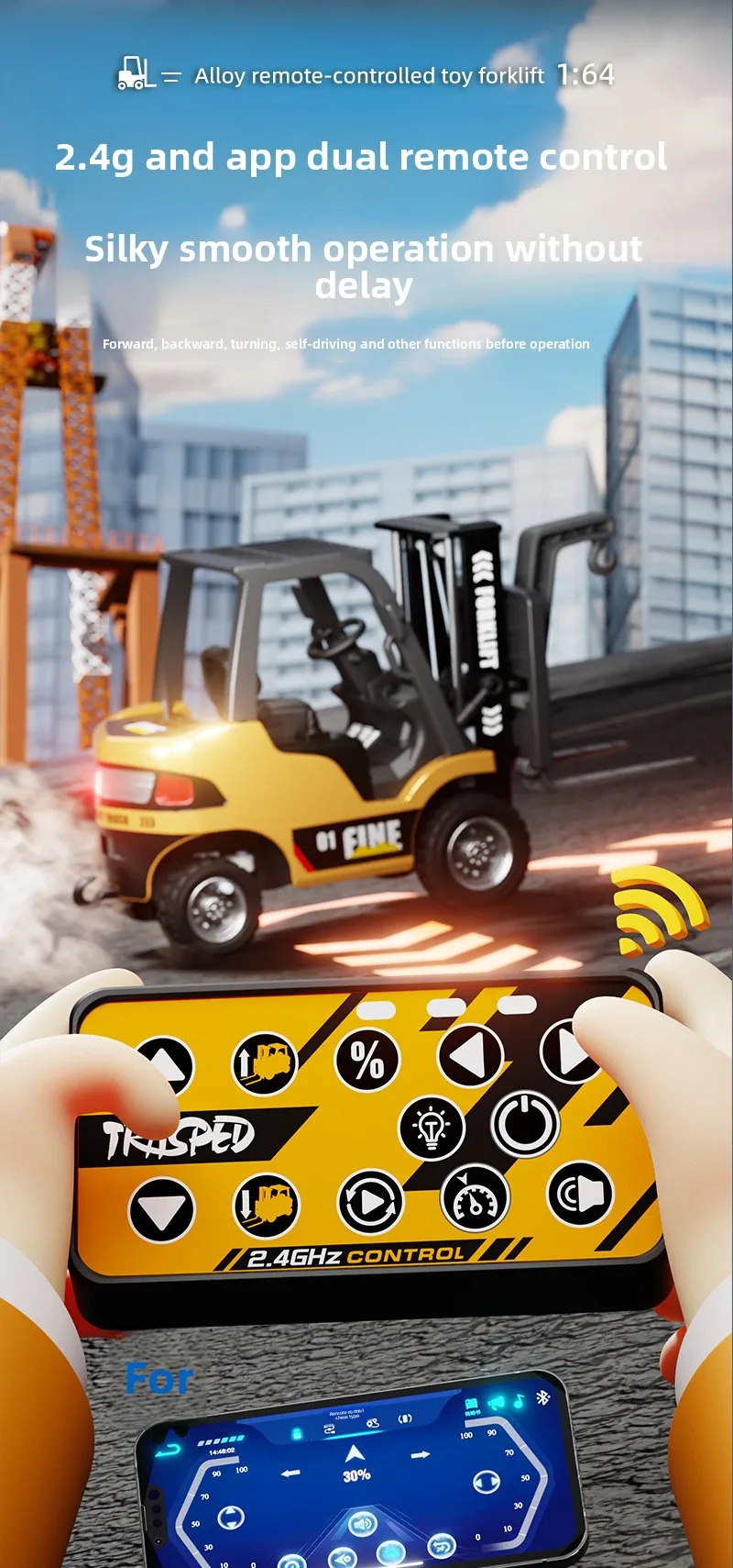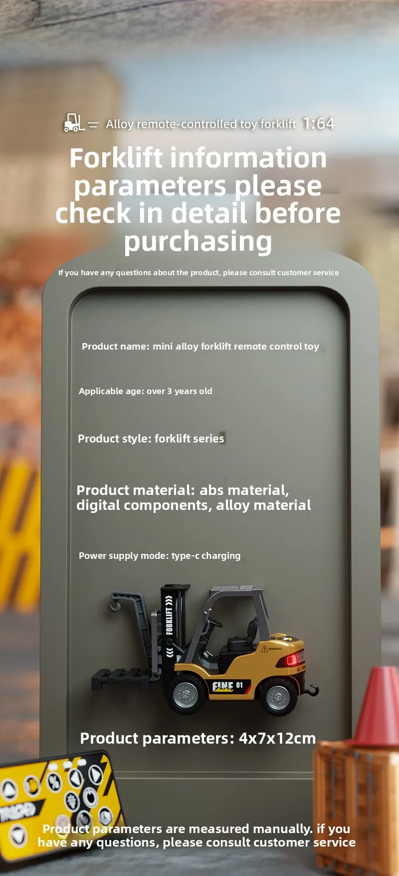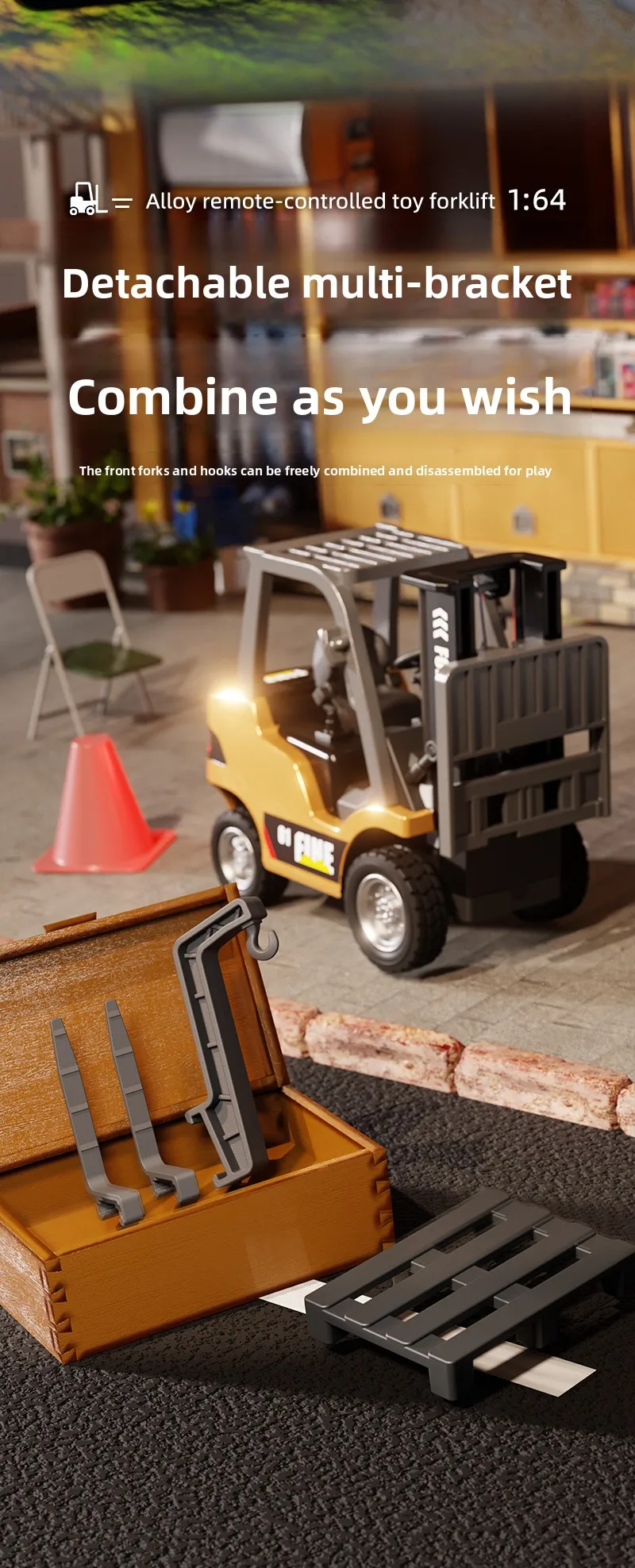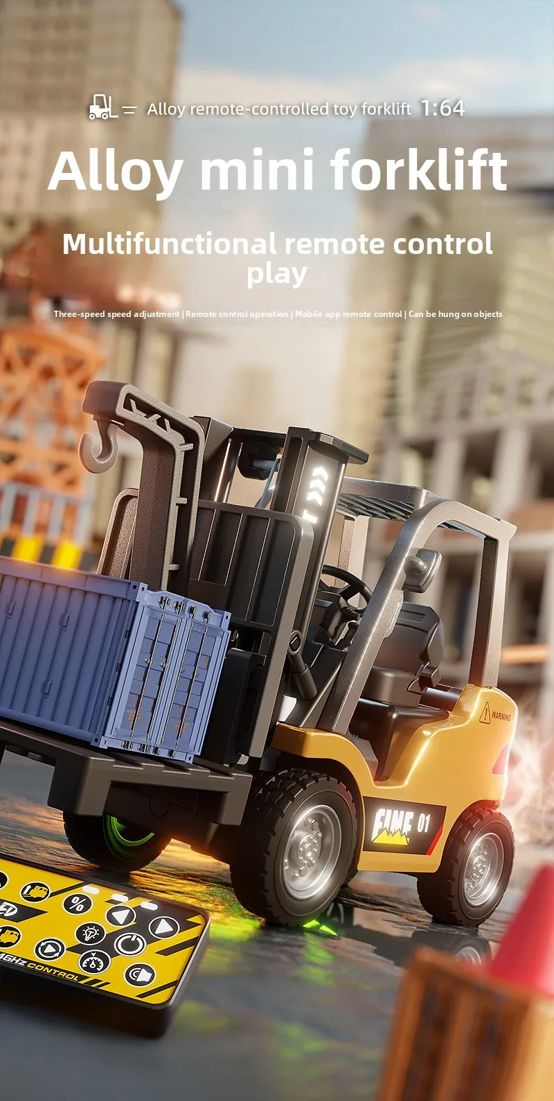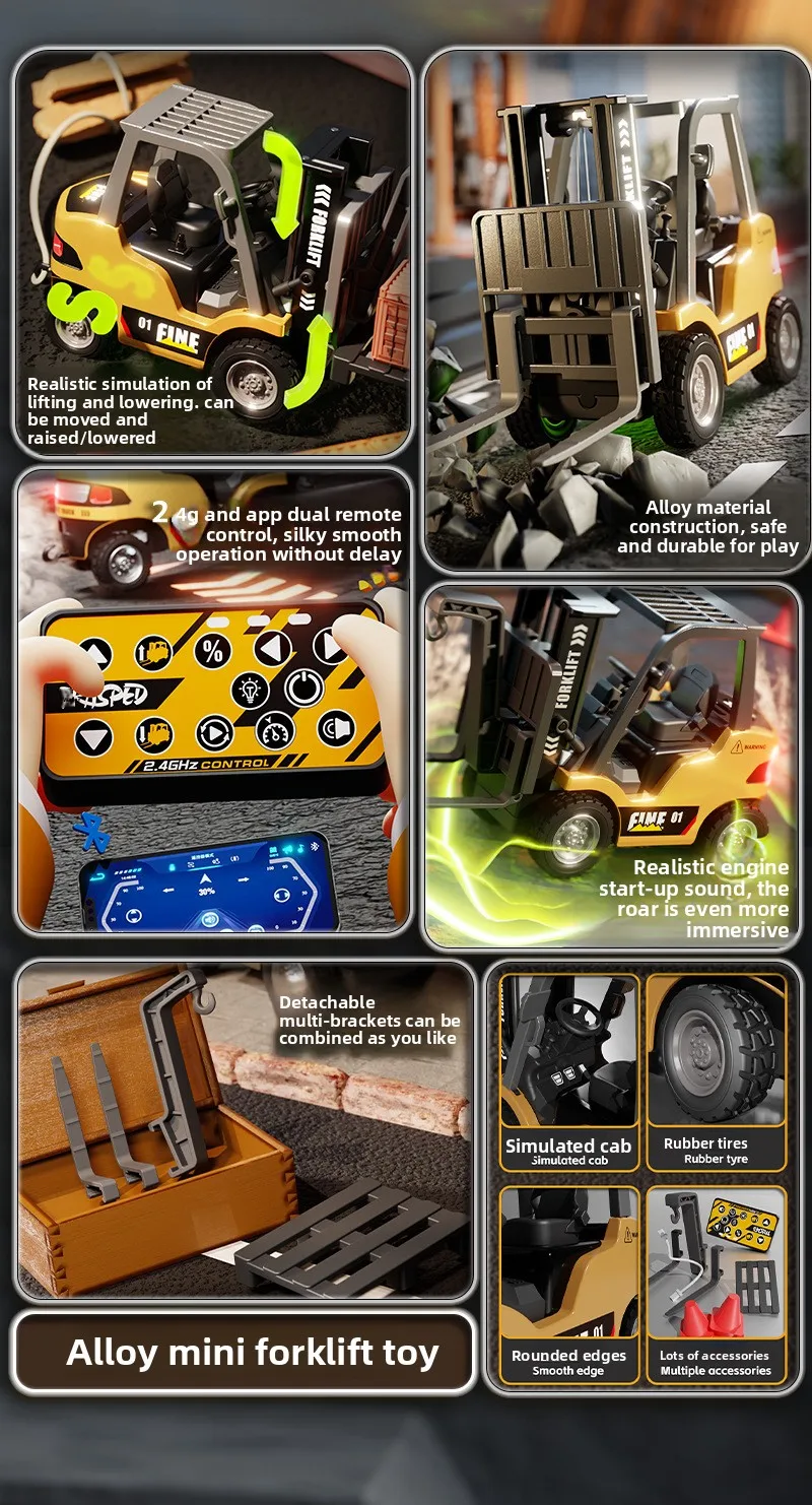 1: 64 Desktop Mini Alloy Remote Control Small Forklift Electric Simulation Engineering Vehicle Model Boy Remote Control Car With