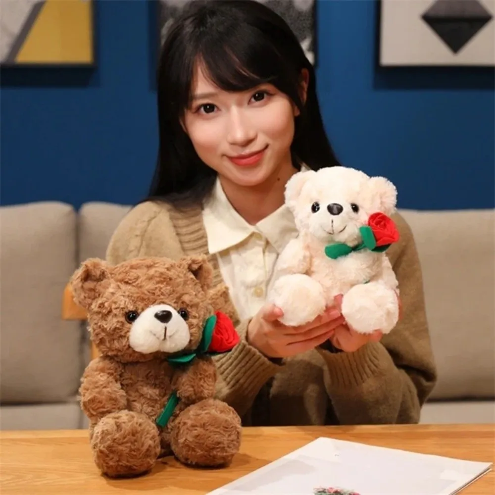 Lovely 16/25CM Bear Plush Toy Romantic Red Heart Rose Bear Doll Cute Soft Holding Flowers Bear Doll Home Decoration